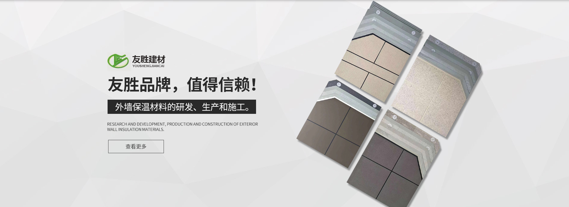 安徽友勝建材科技集團(tuán)有限公司是一家專業(yè)從事建筑施工與節(jié)能保溫及裝飾裝修生產(chǎn)、施工企業(yè)。企業(yè)于2008年從事外墻保溫材料的研發(fā)。生產(chǎn)和施工?,F(xiàn)公司旗下?lián)碛?安徽舒然裝飾 工程有限公司)裝飾裝修貳級資質(zhì)、防水防腐及保溫貳級資質(zhì)。旗下系列產(chǎn)品有:巖棉板、巖棉復(fù)合板、石墨聚苯板、珍珠巖板、勻質(zhì)板、地坪保溫隔聲板,粘結(jié)、抹面及無機(jī)輕型材料等。